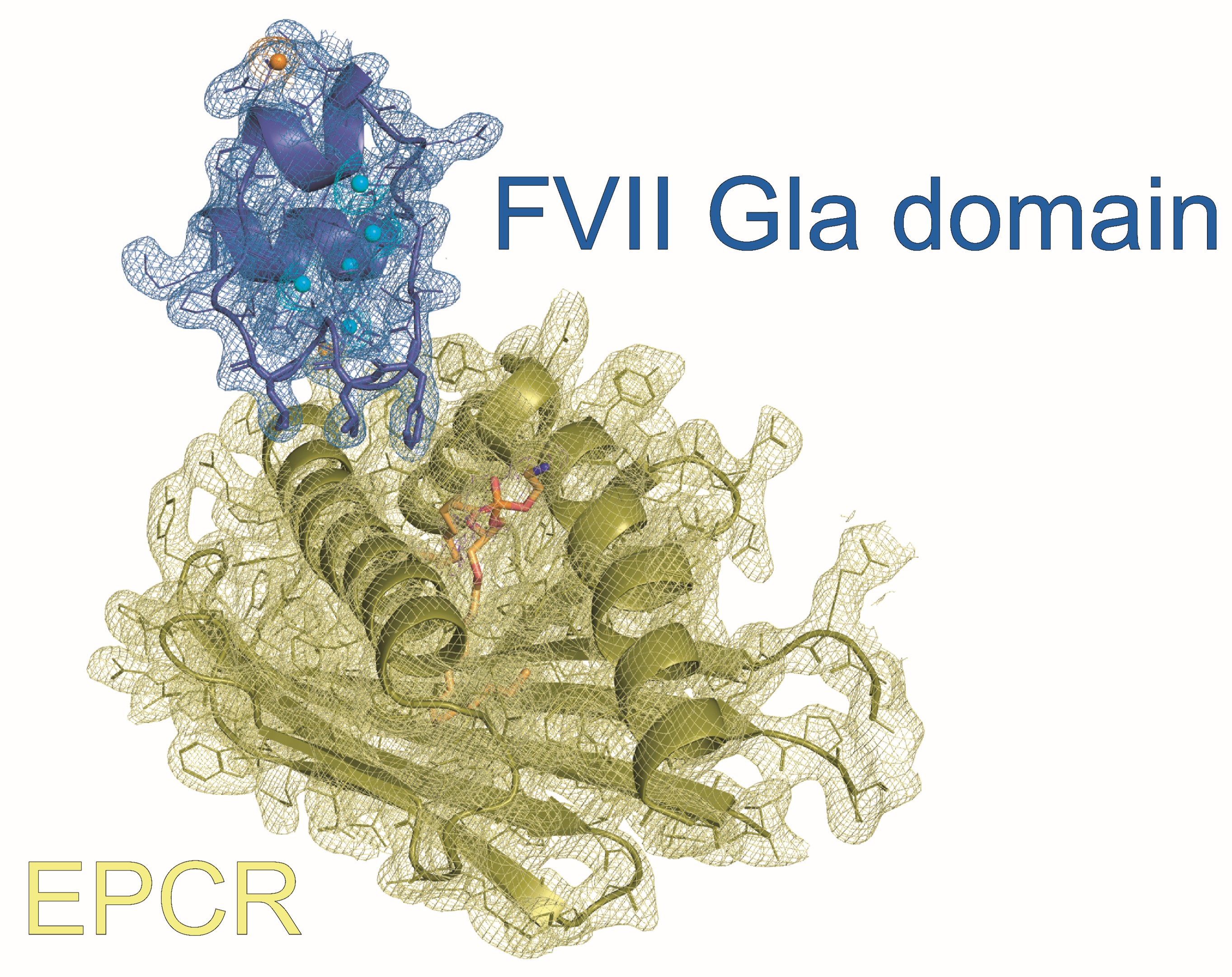 Usando cristalografía de rayos X, los autores determinaron la estructura del dominio Gla del FVII unido a EPCR, revelando que el FVIIa y la proteína C compiten por el mismo sitio de unión en el EPCR mediante un mecanismo de acoplamiento conservado, dependiente del dominio Gla. Este hallazgo establece el EPCR como un receptor genuino para FVIIa, revierte la visión de que el EPCR está restringido a la unión de la proteína C/APC y proporciona una explicación estructural de cómo el rFVIIa puede influir en la activación de la proteína C durante la terapia de la hemofilia.
